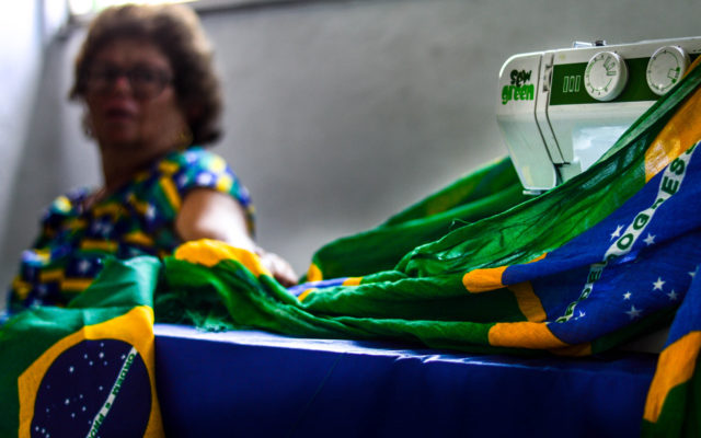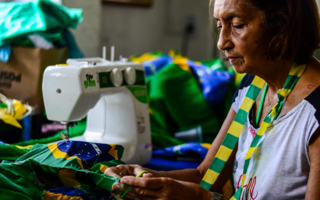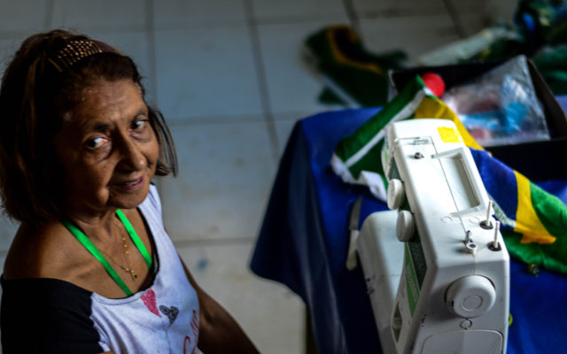 “A bandeira começou com 200m, depois foi para 500… agora estamos indo para 3.600 metros². Me sinto orgulhosa de estar ajudando com esse bandeirão. É um projeto maravilhoso”, explica Dodô, que continua “Tem algumas pessoas que me ajudam. Mas eu gosto mais de trabalhar só, que eu tenho o controle do processo. Meu trabalho eu gosto perfeito. Eu tenho 50 anos como costureira. Cada um tem seu estilo de costura”, enfatiza.