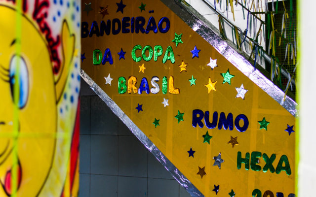 “Esse ano a gente queria chegar a 5.000 metros, mas não tem quem carregue. Ela fica muito comprida e não tem controle. No dia do desfile, vem muita gente pra ajudar. Mas nos dias normais, pra colocar a bandeira só com os estudantes da manhã, por exemplo, não dá. Tem que ser os alunos dois turnos juntos. Aí resolvi parar nos 3.000 metros mesmo. Tem muita gente que gosta. O povo brasileiro precisa de alegria, de festa, aqui ninguém faz nada. Brasileiro é alegre, brincalhão, hoje está perdendo isso. Por isso que eu luto para que a festa fique bonita, para que as pessoas se entusiasmem, mesmo que a gente perca de 14 a 0, mas valeu. No dia que o Brasil perdeu por 7 a 1 [ para a Alemanha, em 2014], eu tive raiva. Arranquei todas as bandeirolas. Não ficou nada na rua. Guardei a bandeira, tudo. Aquilo foi horrível“, admite Pró Lia, dona da escola há 50 anos.